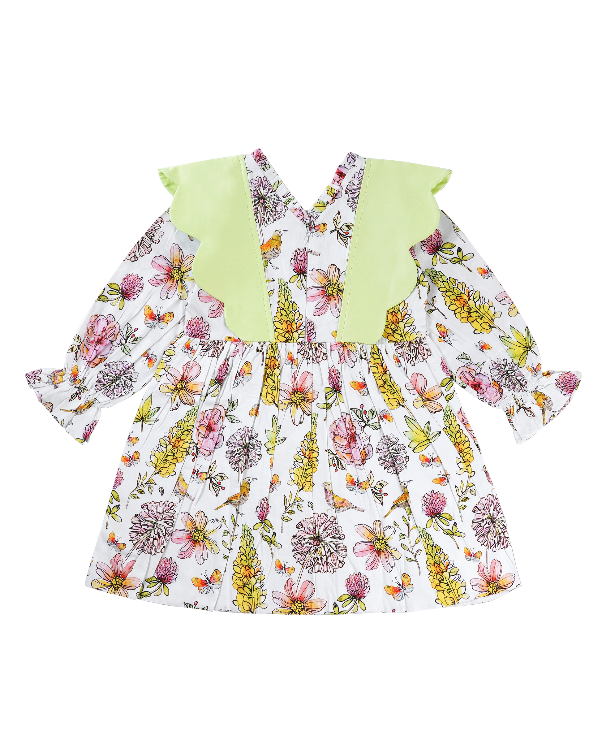Twirl into springtime style with this charming floral dress! Featuring a playful contrast collar that frames the face beautifully, this dress combines comfort with eye-catching design. The vibrant floral print brings joy to everyday adventures, while the quality fabric ensures all-day wearability. Perfect for playdates, family gatherings, or just spreading happiness wherever she goes. A wardrobe essential that makes getting dressed fun!