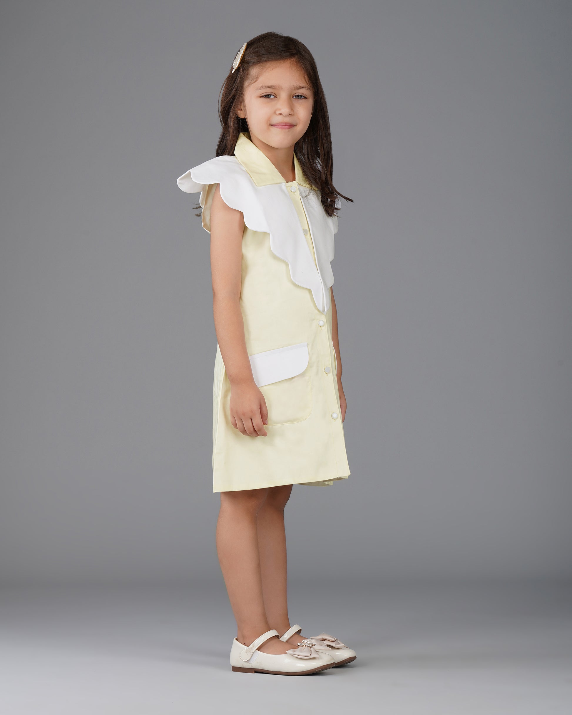 This fun and comfy dress features a charming scallop collar that adds a playful touch to your little girl's wardrobe. Designed with a relaxed fit, it ensures all-day comfort for school, playdates, or family outings. Perfect for girls who love a mix of style and ease in their everyday wear.